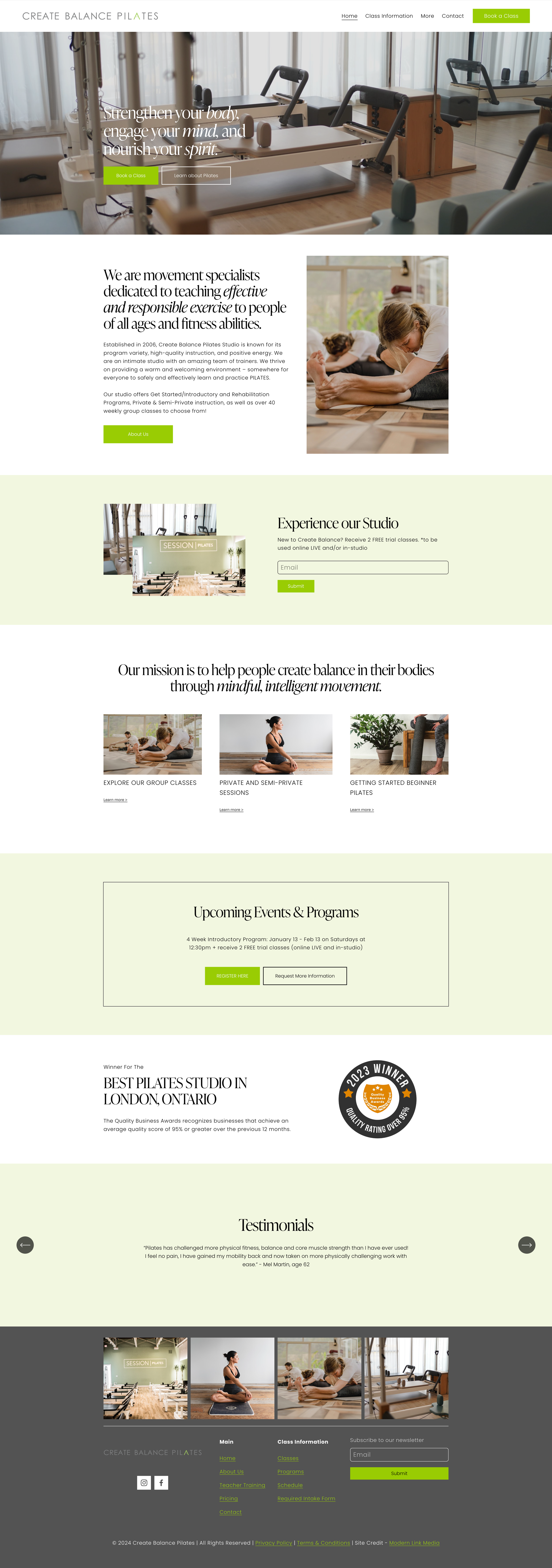 Here is a perfect example of a full redesign done for a local pilates studio. They hired me to move them from WIX to Squarespace so that they could manage everything themselves. They wanted to clean up their cluttered, text-heavy website to make it easier for clients to book and see the space.